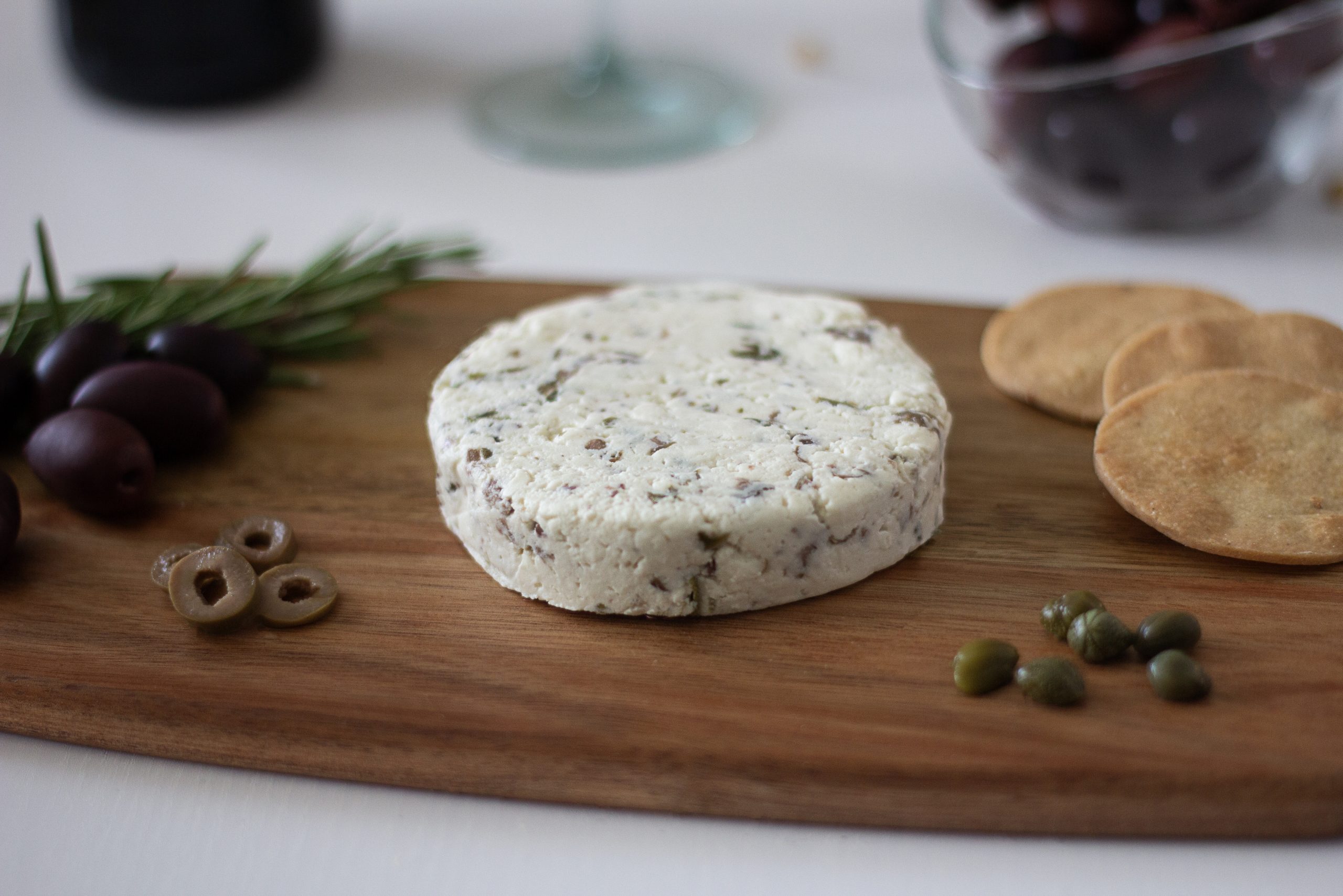 Ingredients: Water, Organic Almonds, Organic Soy, Organic Coconut Oil, Organic Black Olives, Organic Green Olives, Organic Capers, Salt.